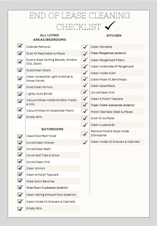 As mentioned above, for all vacate (end-of-lease) cleans, the property must be completely empty of furniture and personal belongings. This ensures we can access and thoroughly clean all areas of the home, which is essential for meeting the standards required by real estate agencies for the successful return of your bond.